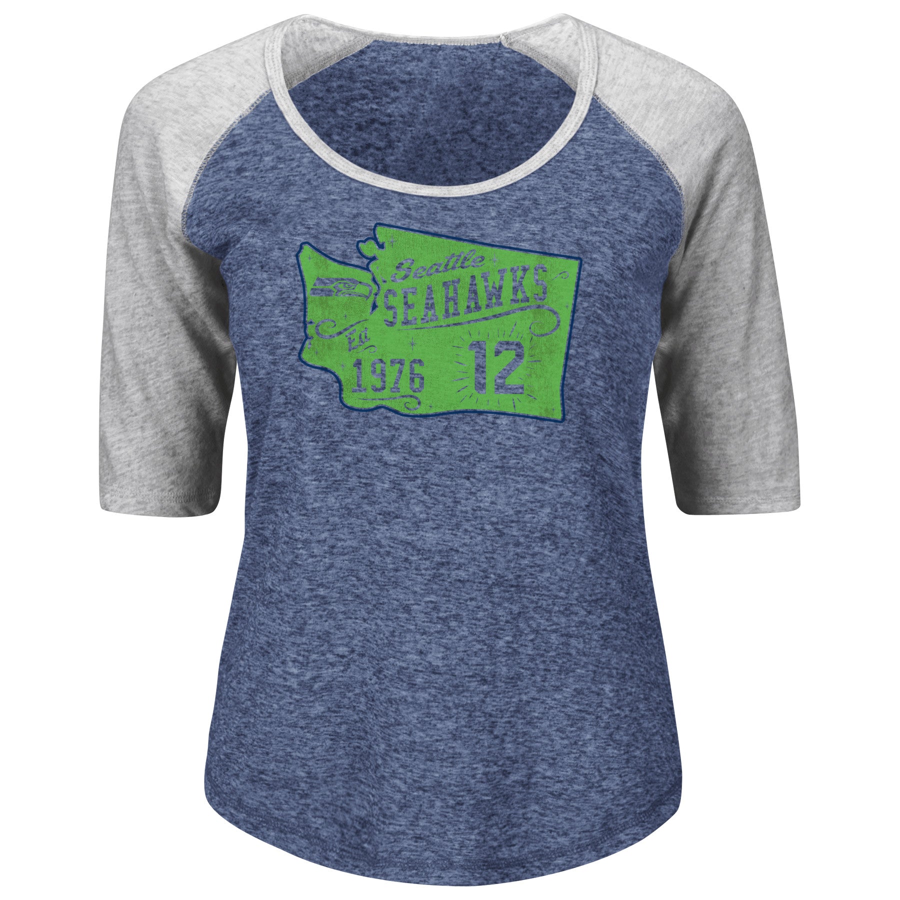 Come on girls your Seahawks are not short on swagger. Show off your support every time with this Pride Rules 3/4 sleeve shirt. It features a screen printed team name with the state of Washington.