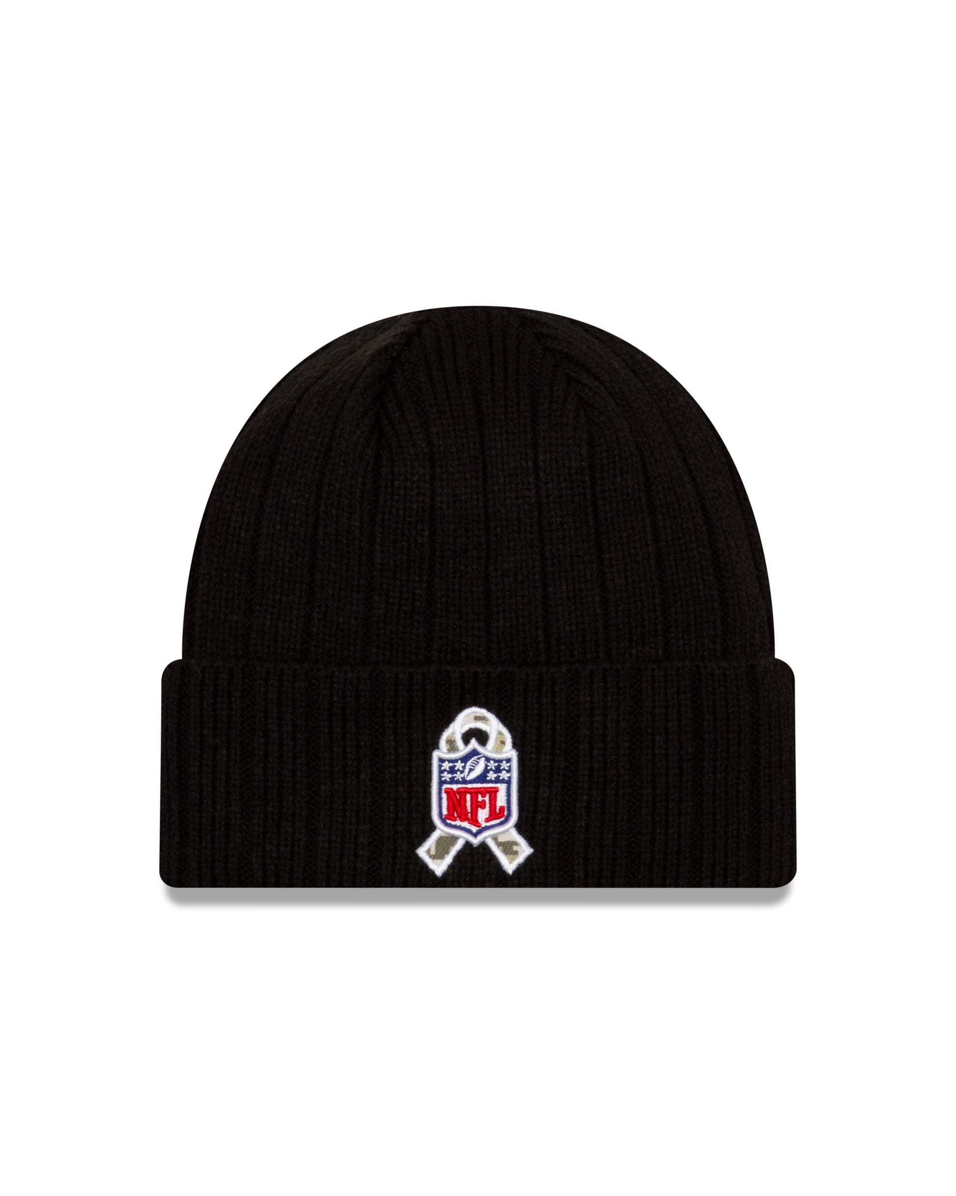 Honor our service members while supporting your favorite team in this year's Official NFL Salute To Service Collection. This Cuffed Knit Hat is constructed of black acrylic and is fleece-lined for extra warmth against the elements. The front crown features a fabric applique with custom team art. This patch uses military-inspired camo fabric and is surrounded with contrasting team color embroidery. Finishing touches include an embroidered American flag patch on the right wear and the official NFL ''Salute to Service'' patch on the rear. The NFL does not profit from the sale of Salute to Service products. Charitable contributions are awarded by the NFL Foundation to the NFL's military nonprofit partners. For more information, please visit www.NFL.com/causes/salute.