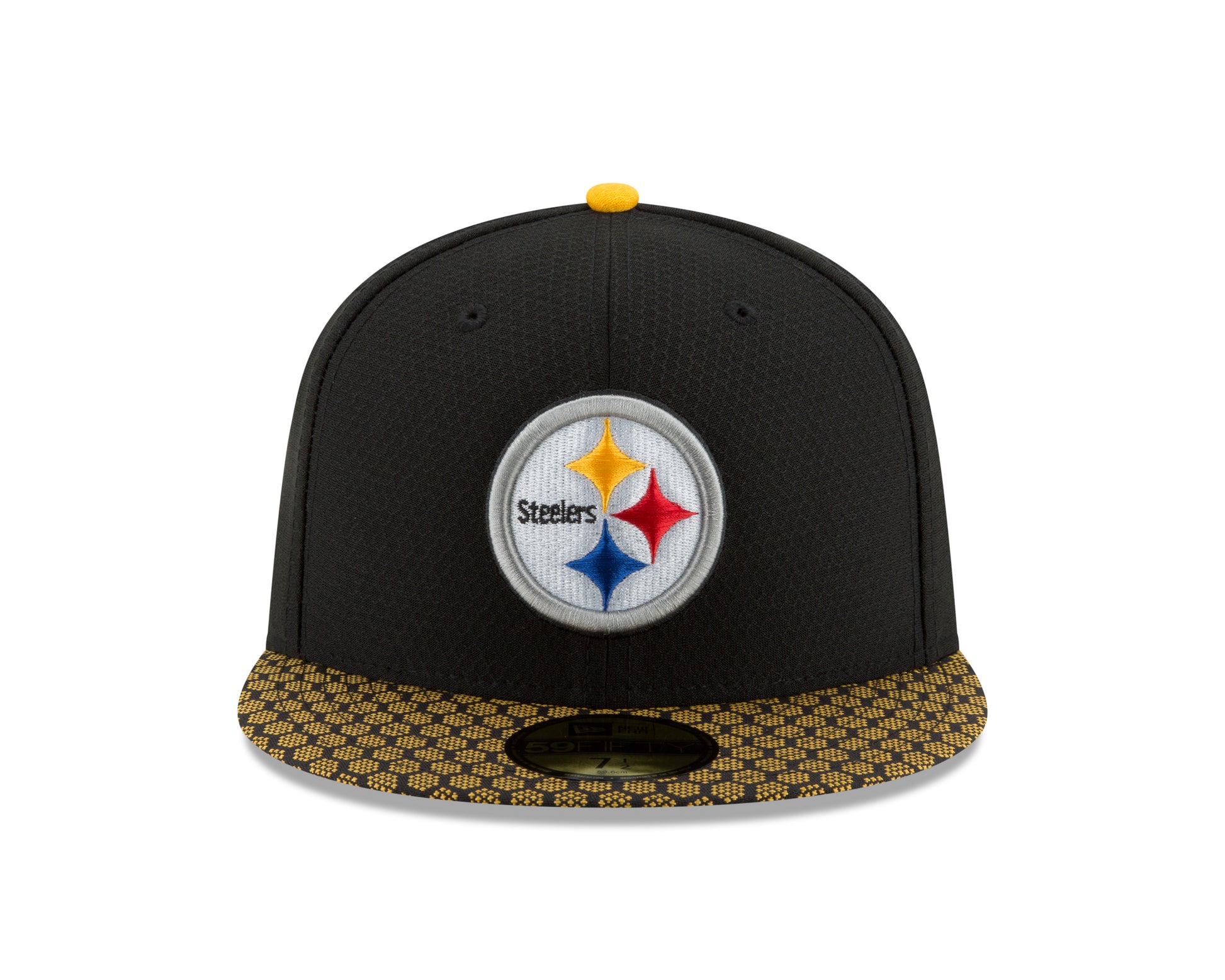 Steelers Fans!! When your thinking of your hawks you'll want to look like them too. Sport this New Era Pittsburgh Steelers 2017 NFL Official Sideline On-Field 59FIFTY Fitted Hat. This fitted hat features a 3D traditional team logo on the crown, with shadow second larger logo. NFL shield on the back and New Era flag on left side. So don't just dream about your favorite team hat wear one for yourself. The 59FIFTY® cap is New Era's signature fitted cap. It is a structured cap with a flat visor, that has the ability to curve. The 59FIFTY® cap has a full crown and six panels. The cap has eight rows of visor stitching and a button on top.