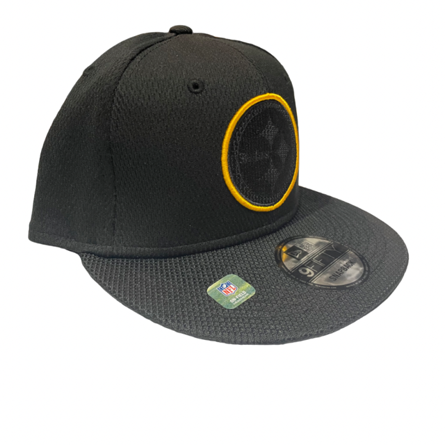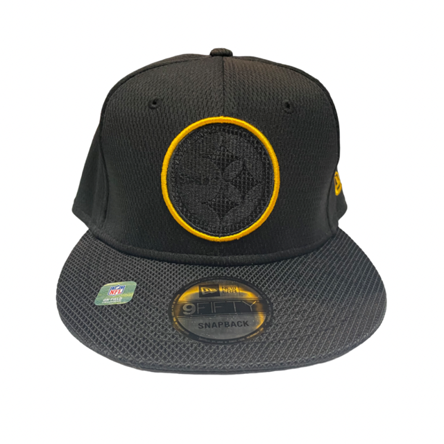 Add to your Pittsburgh Steelers gear with this NFL Sideline Road 9FIFTY Snapback Adjustable Hat. This New Era two-tone cap is constructed of team color Dashmark fabric on the crown and black Dashmark fabric on the visor. The front crown features a bold Pittsburgh Steelers fabric applique logo with contrasting color embroidery. Look for your favorite Pittsburgh Steelers players and coaches wearing this cap on-field throughout the season!