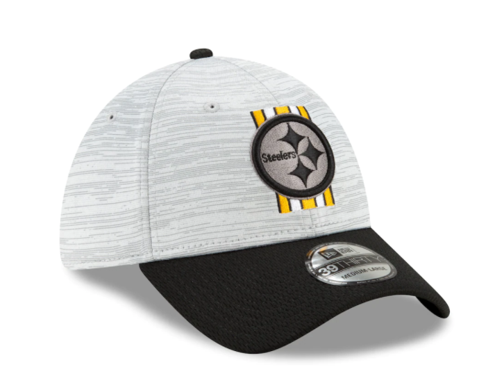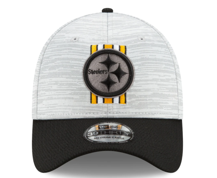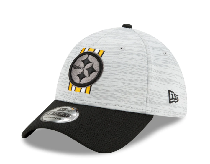 Show off your Steelers pride with this Training 39thirty flex Fit Hat. Official Training Camp Collection from New Era. This two tone flex fit is constructed of grey Digi-Tech heather performance fabric with team color Dash Mark fabric on the visor. On the front crown an embroidered grey and team color logo New era flag on the left. NFL Shield on the back.