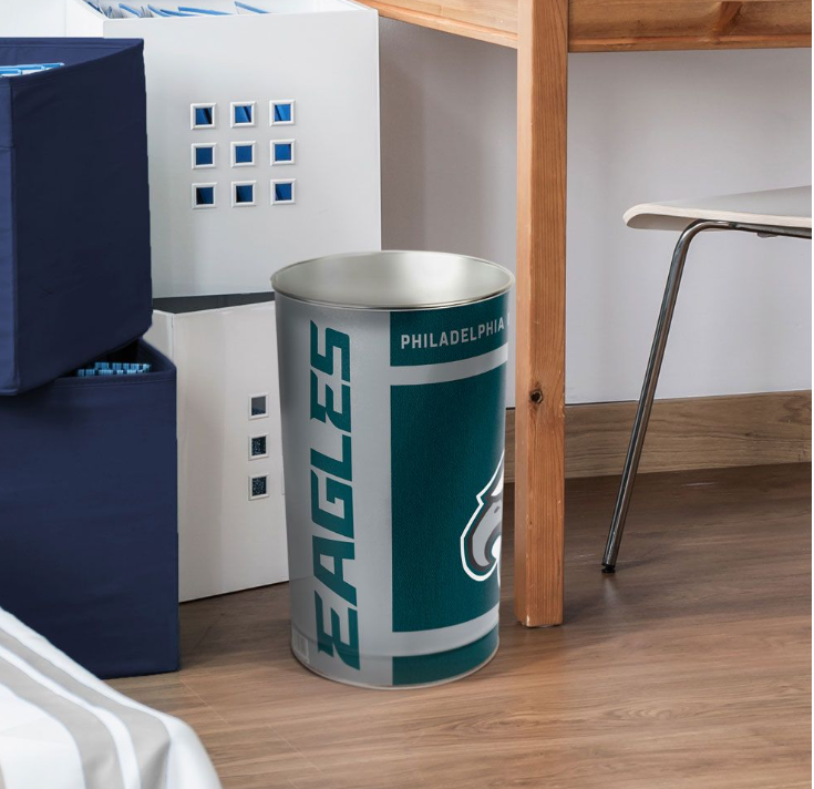 Metal wastebaskets are a great way to decorate a room or office. Wastebaskets are 15" tall by 10.25". They have a tapered top, and feature bright colors and great graphics. The graphics are on both sides of the trash can.
