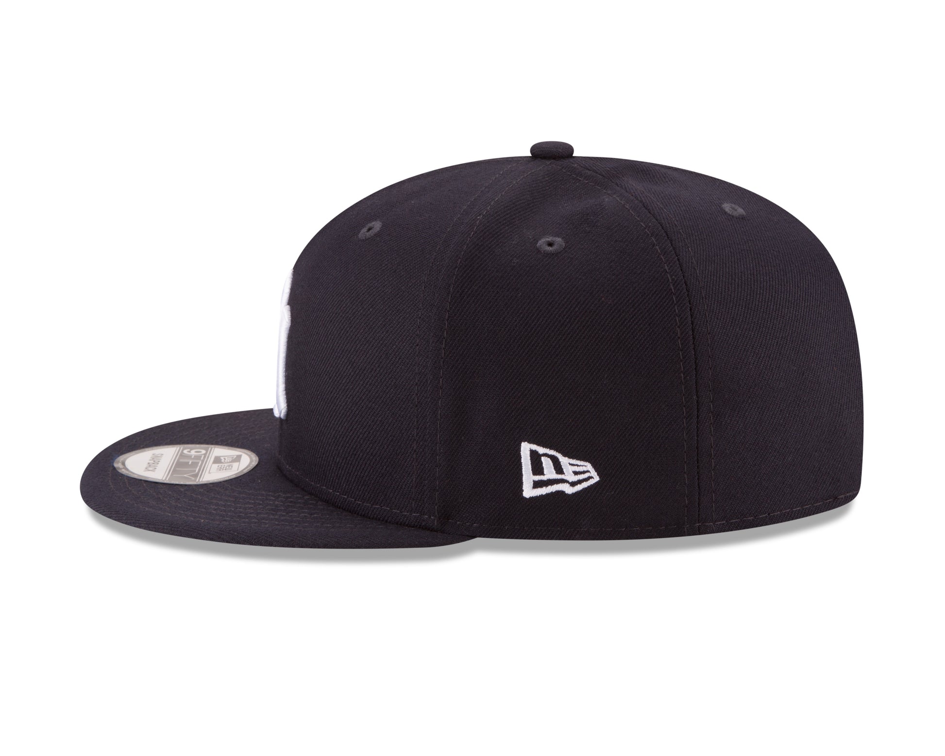 Yankees logo on the crown 9/11 Memorial Patch on left side and MLB logo on the back . So don't just dream about those Yankees wear one for yourself. The 59FIFTY® cap is New Era's signature fitted cap. It is a structured cap with a flat visor, that has the ability to curve. The 59FIFTY® cap has a full crown and six panels. The cap has eight rows of visor stitching and a button on top.