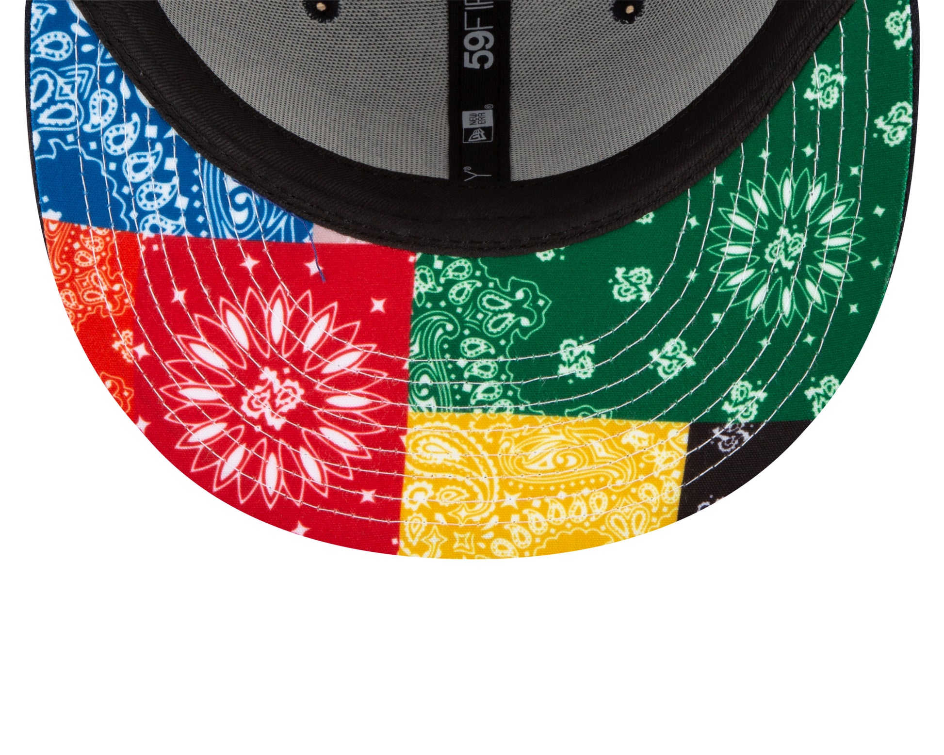 Yankees Fans!! Show off in this Limited addition Paisley Patchwork Undervisor 59FIFTY Fitted hat. This fitted hat features the Yankees logo on the crown with Paisley Pattern and Multi color patchwork undervisor. MLB logo on the back . So don't just dream about those Yankees wear one for yourself. The 59FIFTY® cap is New Era's signature fitted cap. It is a structured cap with a flat visor, that has the ability to curve. The 59FIFTY® cap has a full crown and six panels. The cap has eight rows of visor stitching and a button on top.