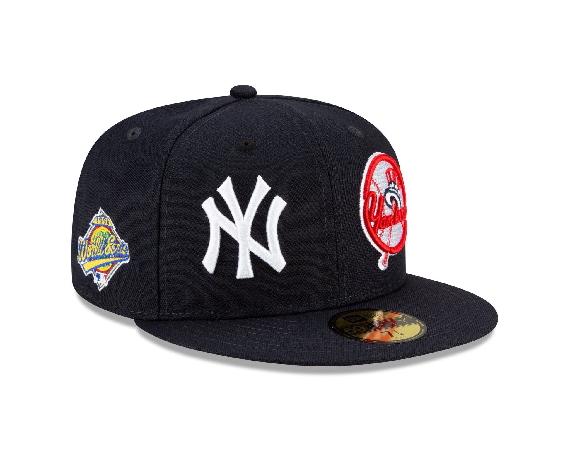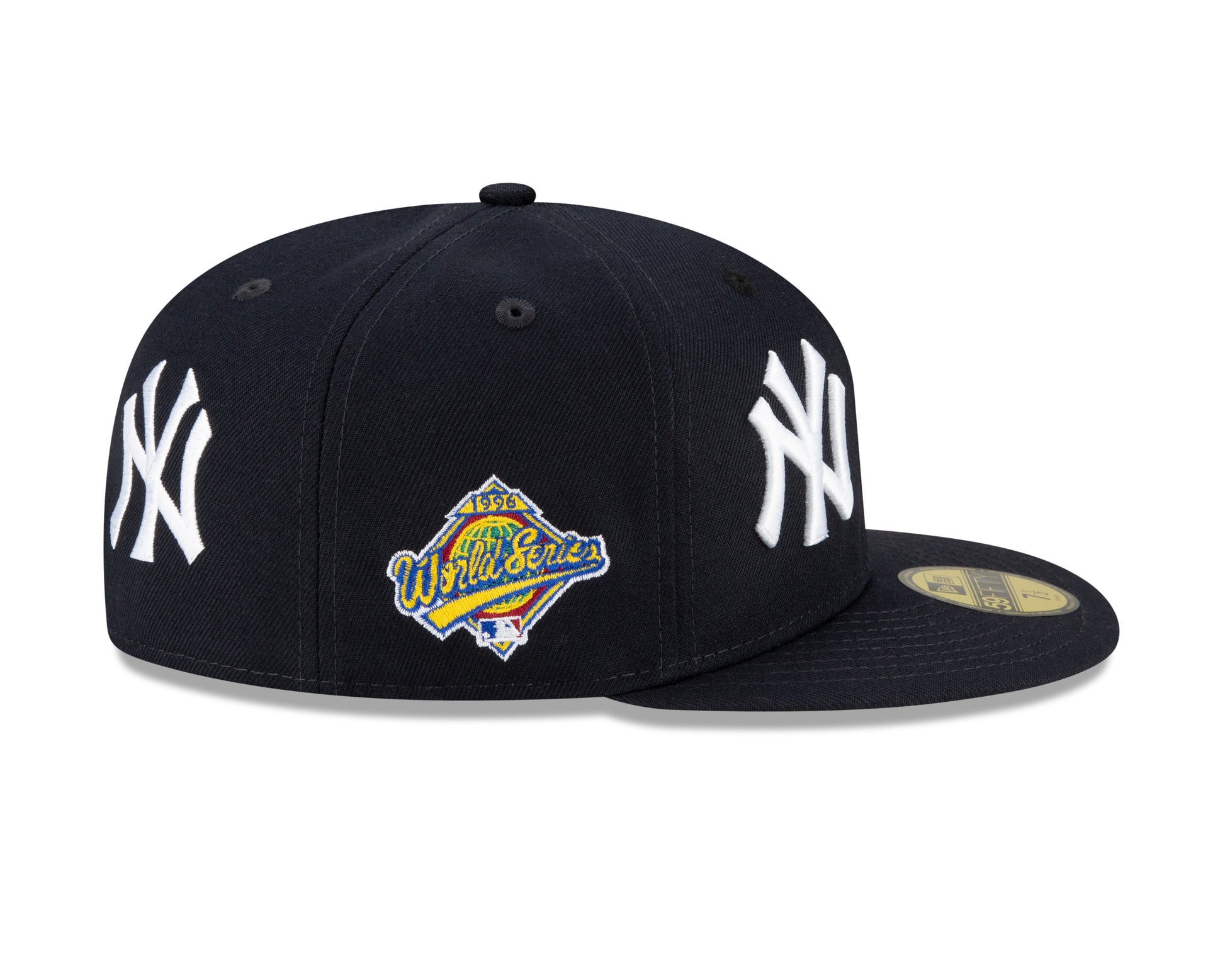 Show off in this commemorative patch 59FIFTY Fitted hat. This fitted hat features the Yankees logo on the crown with the multiple commemorative patches around the crown and MLB logo on the back . Underbill is gray. The 59FIFTY® cap is New Era's signature fitted cap. It is a structured cap with a flat visor, that has the ability to curve. The 59FIFTY® cap has a full crown and six panels. The cap has eight rows of visor stitching and a button on top.